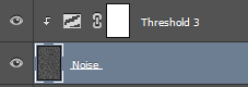 With the noise layer selected go to Filters>Pixelate>Crystallize and move the slider to 10. Press OK. Change the blending mode of the layer to Screen to get rid of the black background.